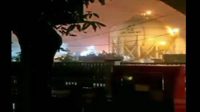 Kilang minyak pt pertamina ru vi balongan di kabupaten indramayu, jawa barat, pada senin (29/3) dini hari.